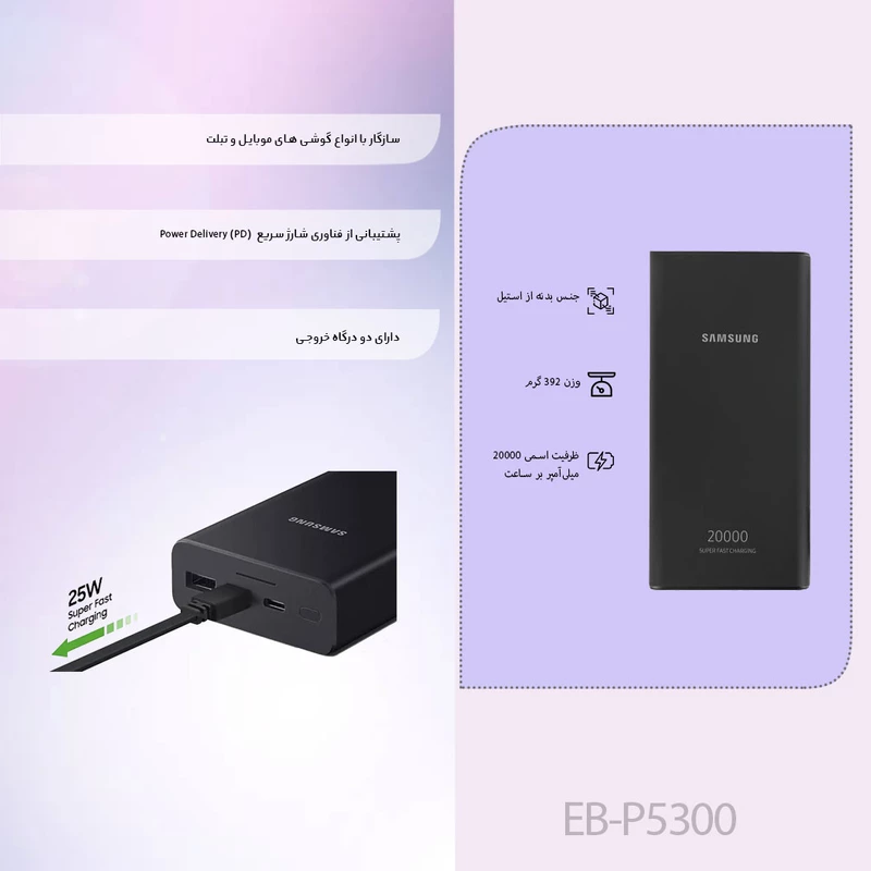 پاوربانک سامسونگ مدل EB-P5300، ظرفیت 20000 میلیآمپر ساعت