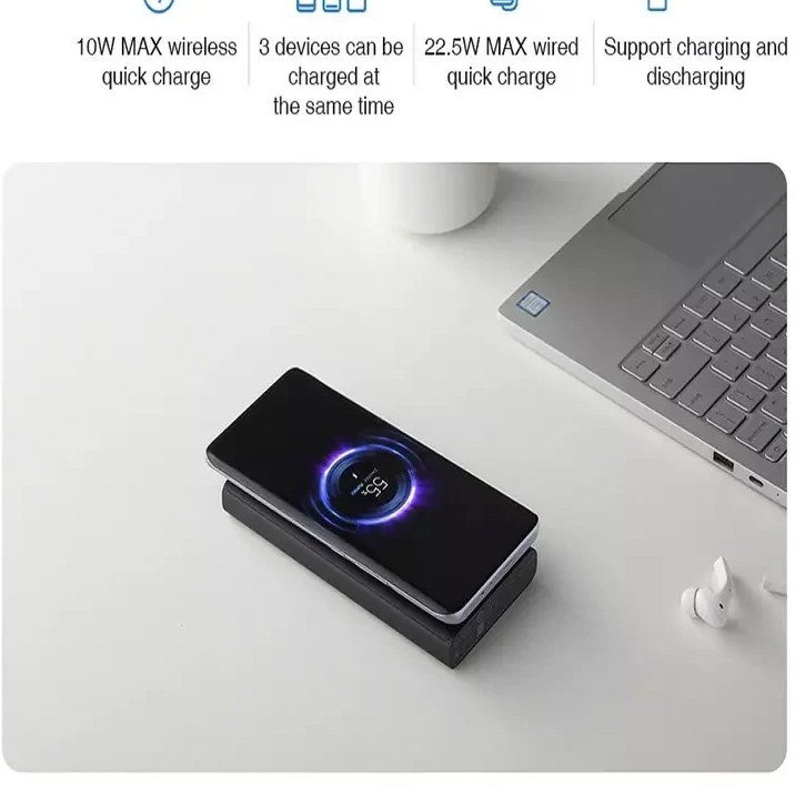پاوربانک وایرلس شیائومی مدل WPB15PDZM قابلیت شارژ 3 گوشی بصورت همزمان و با استفاده از پنل شارژ وایرلس رو داره. این پاوربانک مجهز به باتری با ظرفیت 20000 میلی آمپر بوده و قادر است در مکان هایی که دسترسی به برق مستقیم ندارید همراه شما باشد. این پورت ها دارای شارژ سریع نیز می باشند که به شما کمک می کند دستگاه هایی که دارای این قابلیت هستند را با سرعتی بالا شارژ کنید. علاوه بر پورت ها در پاوربانک Xiaomi WPB15PDZM می توانید گوشی خود را از طریق شارژ وایرلس 10 وات که در قسمت رویی پاوربانک قرار گرفته است شارژ کنید. از ویژگی های مهم دیگری که میتوان به آن اشاره کرد قابلیت شارژ همزمان پاور بانک و دستگاهای متصل به آن است. همچنین مجهز به چندین فناوری حفاظتی برای جلوگیری از شارژ بیش از حد، تخلیه بیش از حد، گرمای بیش از حد و اتصال کوتاه در هر شرایط کاری می باشد. همچنین ورودی Type-C این دستگاه به صورت دو طرفه عمل می کند که هم برای شارژ کردن خود پاوربانک هم برای شار کردن دیگر وسایل با توان 18 وات کاربرد دارد.